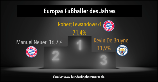 Heute Abend wird Europas Fußballer des Jahres gekürt. Der FC Bayern München ist mit gleich zwei Spielern in der Top-3 Auswahl vertreten.